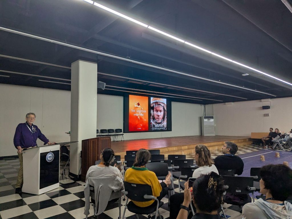 Thursday’s lectures were a whirlwind of policy, space powers, and deep-space wonder. Tanja Masson-Zwaan returned for a sharp session on New Space law, Ian Christensen explained the global space landscape, Su-Yin Tan guided us through GNSS and Earth sustainability, and Jim Green closed with the grand Life Cycle of the Stars. That evening, we gathered for a movie night screening of The Martian, where Jim Green himself joined us to add behind-the-scenes context (and possibly plot-check Matt Damon).