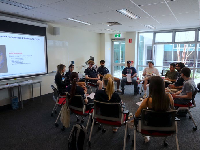 The second elective workshop “Astronaut Performance and Selection” was led by Dr. Malica Schmidt and Thomas Mueller. This workshop was inspired by the requirements placed on astronauts operating in challenging and isolated environments and included activities derived from astronaut selection processes. The session provided the participants with a unique hands-on experience, combining cognitive and physical challenges. This not only gave them an insight into the mental and physical demands of astronaut selections, but also fostered their teamwork and communication skills for their everyday life.